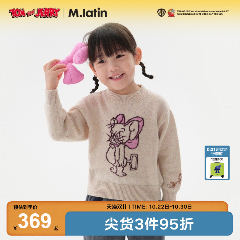 【猫和老鼠】马拉丁商场同款毛衣冬女小童蝴蝶结圆领毛衣