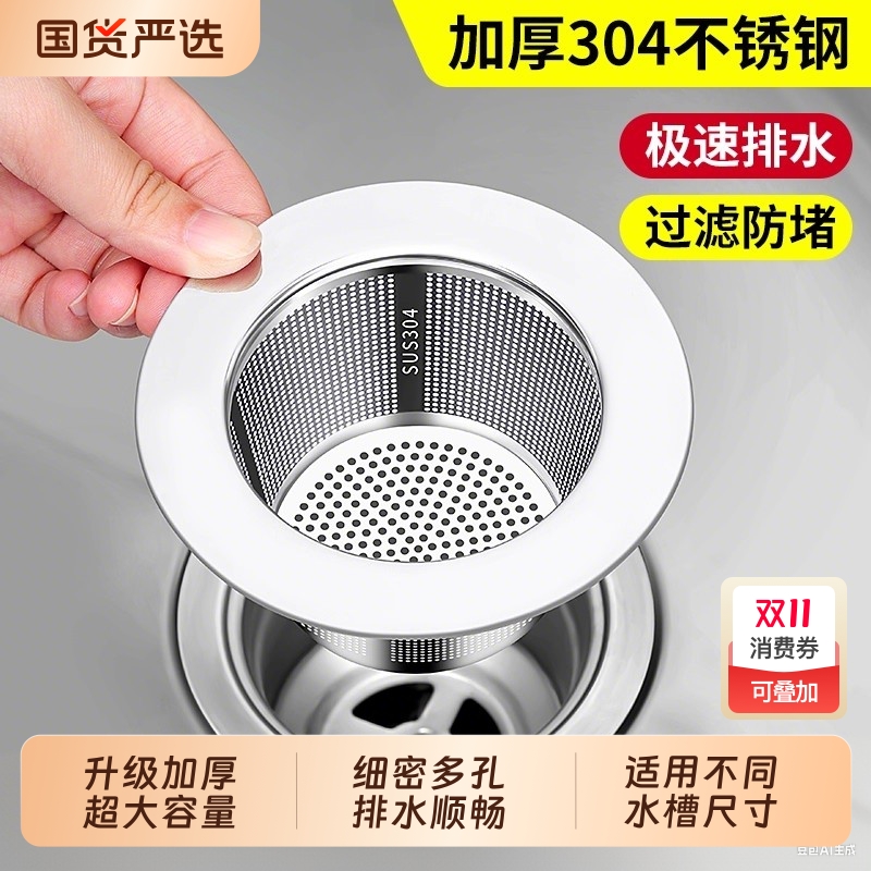 厨房水槽过滤网不锈钢洗菜盆下水道垃圾残渣滤网水池洗碗槽过滤器