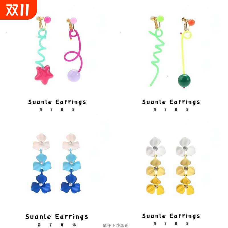 蒜了耳饰彩色多巴胺可变造型趣味耳钉可爱童趣不撞款耳夹甜酷耳环