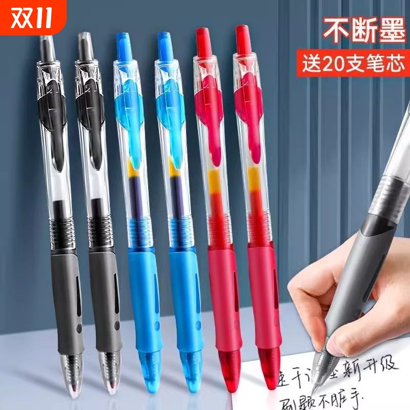 新款按动中性笔水笔碳素黑签字笔学生用水性蓝笔商务办公考试专用刷题