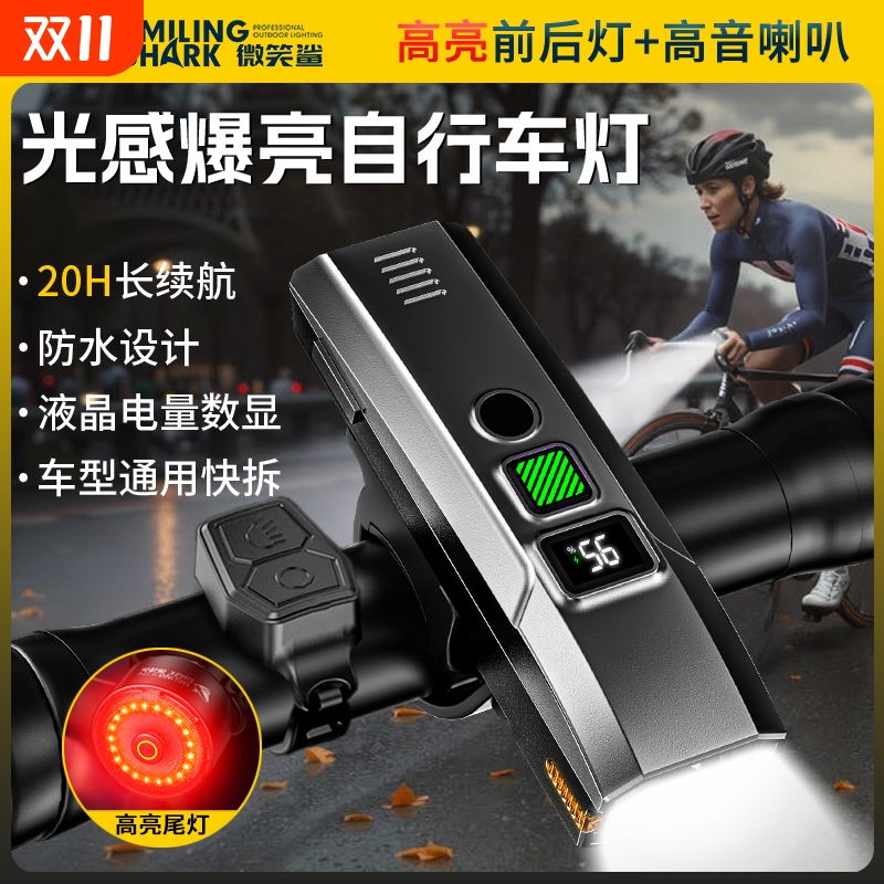 儿童自行车灯山地单车充电强光夜骑前灯铃铛夜间骑行喇叭尾灯防水