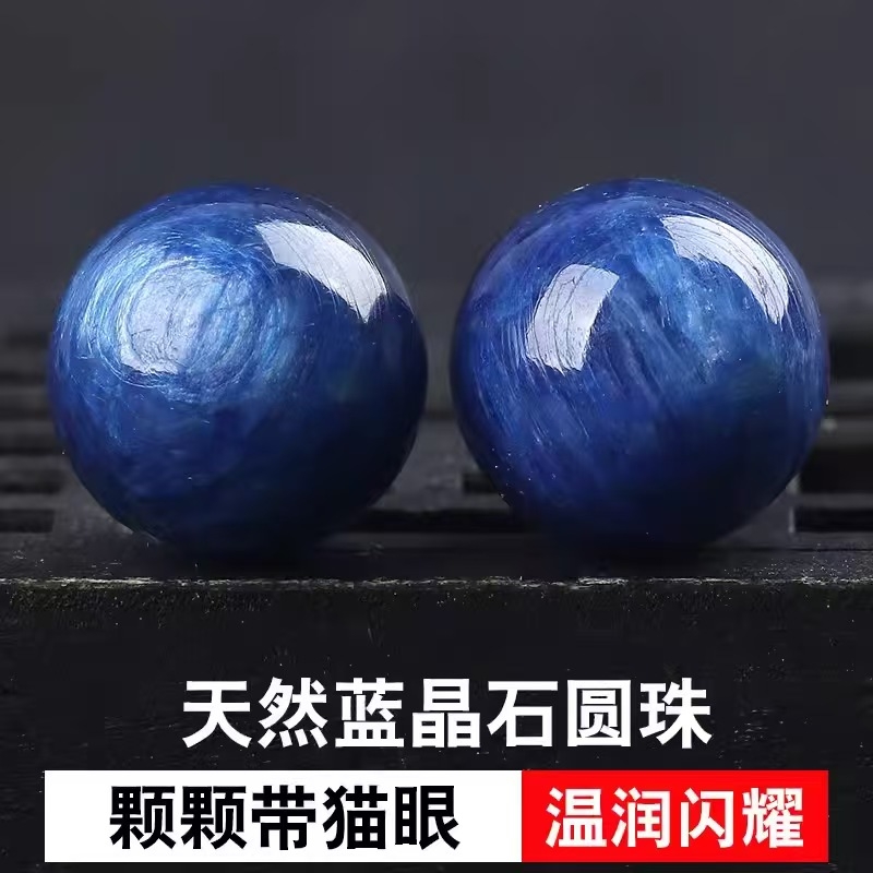 天然6A深蓝蓝晶石猫眼颗颗大颗粒水晶蓝色多宝手链DIY散珠圆珠