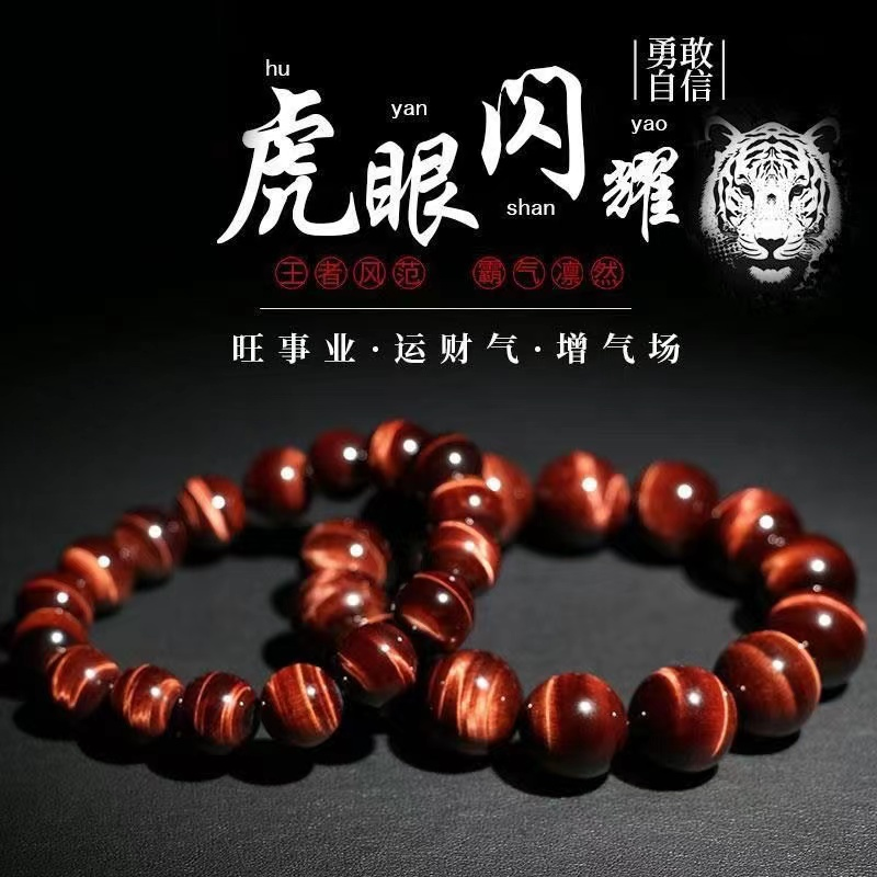 天然红虎眼石手链水晶转运招财手串黄虎眼石虎睛石黄金玉石珠宝
