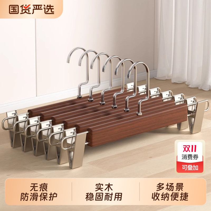 实木植绒衣架防滑无痕家用挂衣撑衣服架子木质木头衣柜收纳服装店