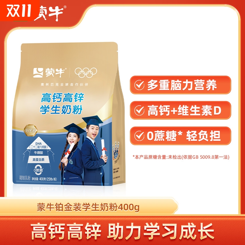 蒙牛铂金装中老年人多维高钙奶粉400g袋装营养送礼长辈配方蔗糖