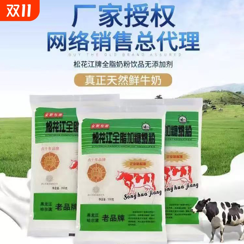 松花江奶粉350克加锌加糖奶粉无蔗糖奶粉四袋装