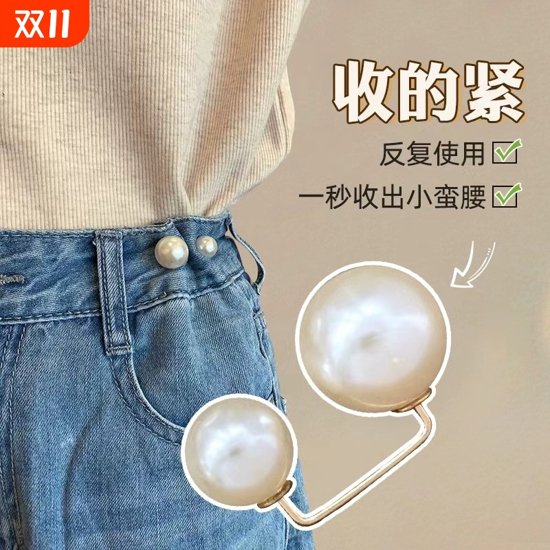 裤腰收紧神器牛仔裤收腰纽扣裤子腰围大改小别针珍珠胸针扣子肩带