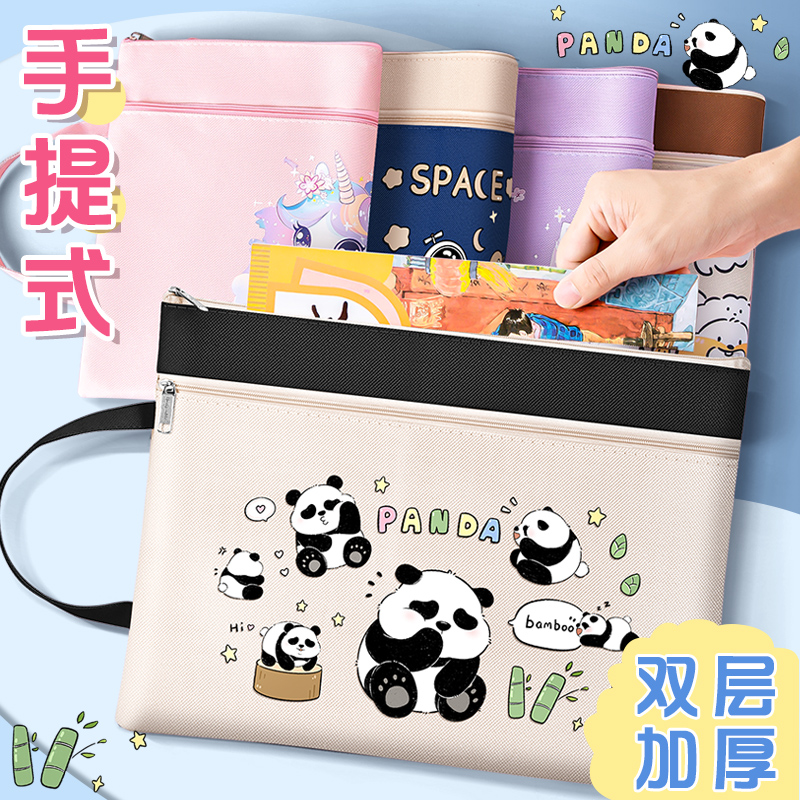 中小学生手提卡通文件袋大容量拎书袋美术袋创意男女孩补课包拉链高颜