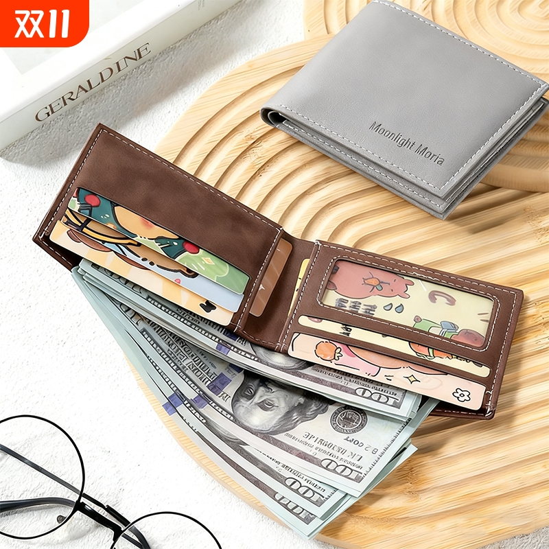 MUJ钱包男短款超薄钱夹2025新款大学生年轻人皮夹子卡包证件轻