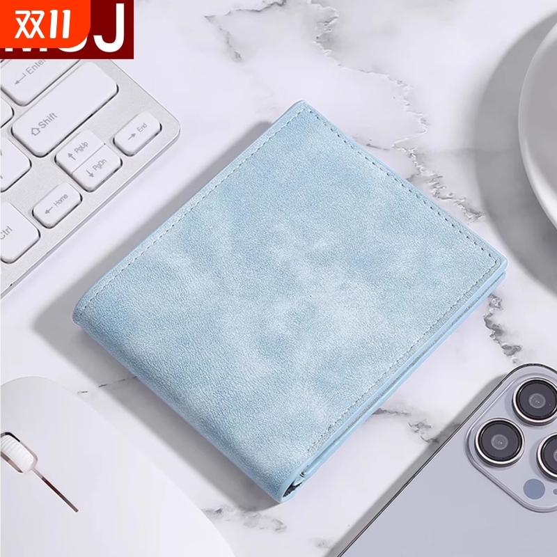 钱包男士短款简约超薄多卡位皮夹卡包男款大学生软皮钱夹证件磨砂