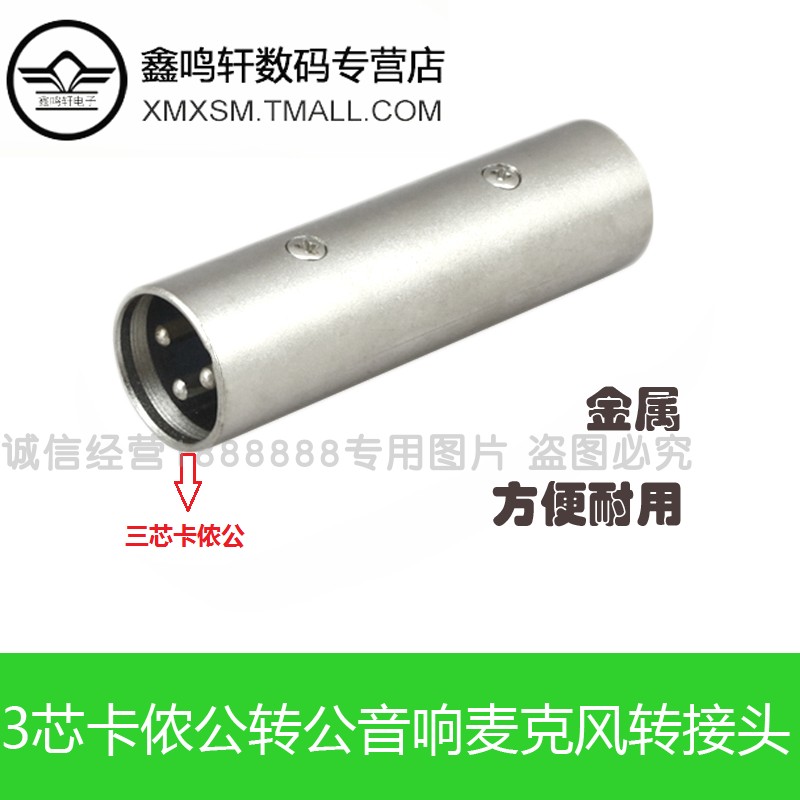 3芯卡侬公对公音响麦克风转接头短体 音响调音台话筒直通头3芯