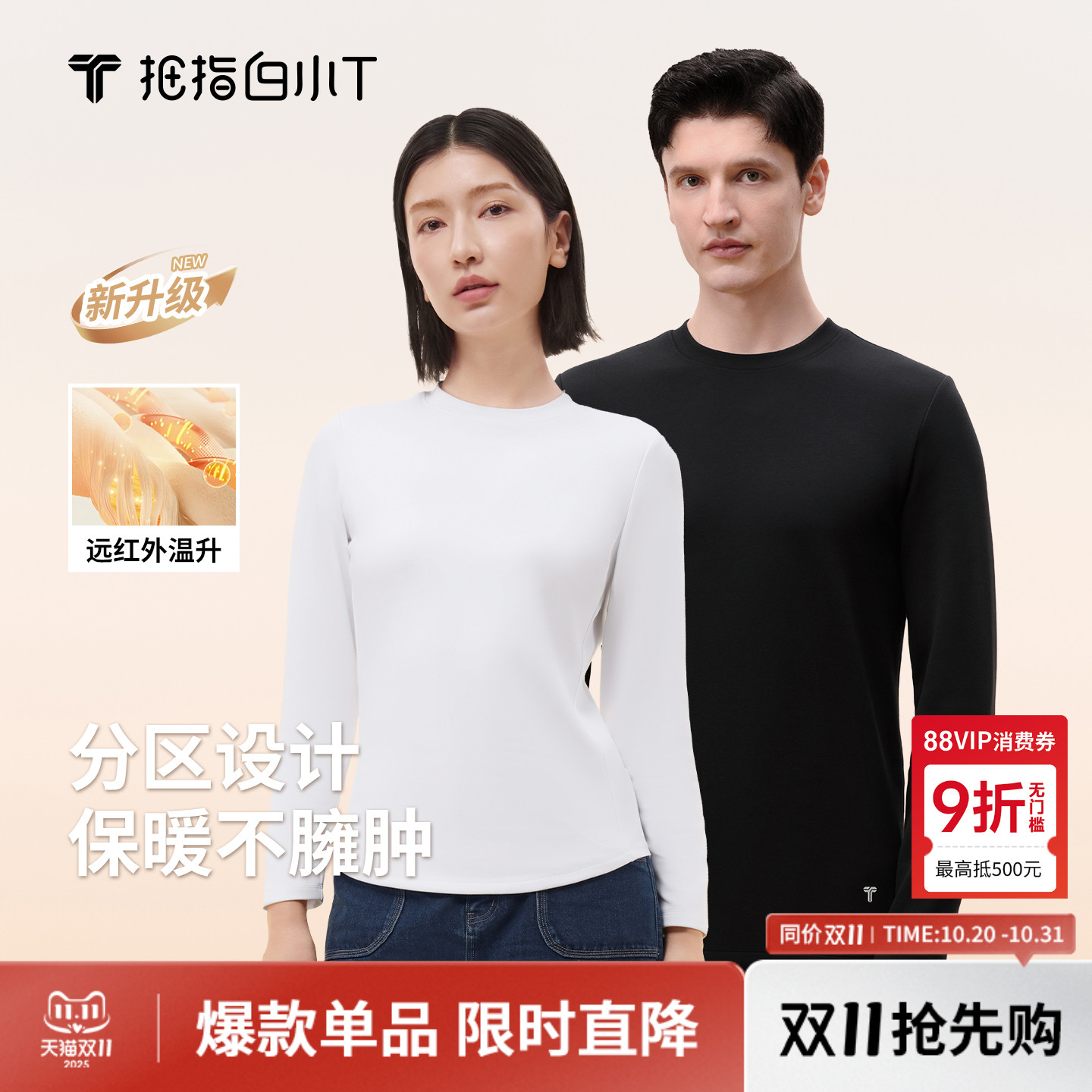 拇指白小T长袖T恤男女春秋新款加厚磨毛打底衫休闲内搭套衫