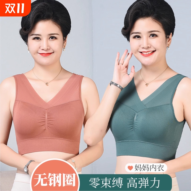 中老年背心式薄款运动内衣女无钢圈无痕妈妈文胸大胸显小聚拢胸罩