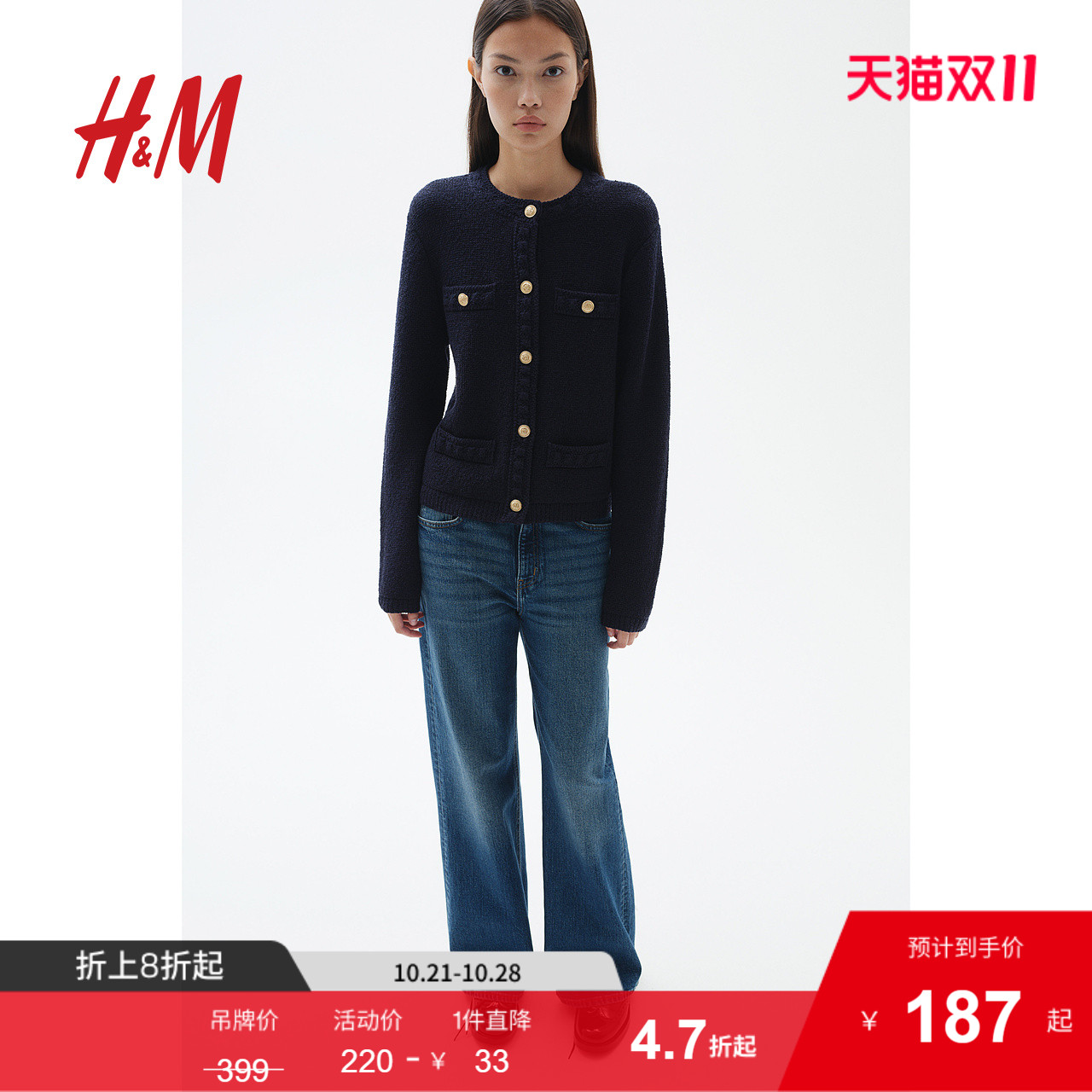 HM女装毛针织衫秋季法式慵懒短款廓形针织小香风外套上衣11943