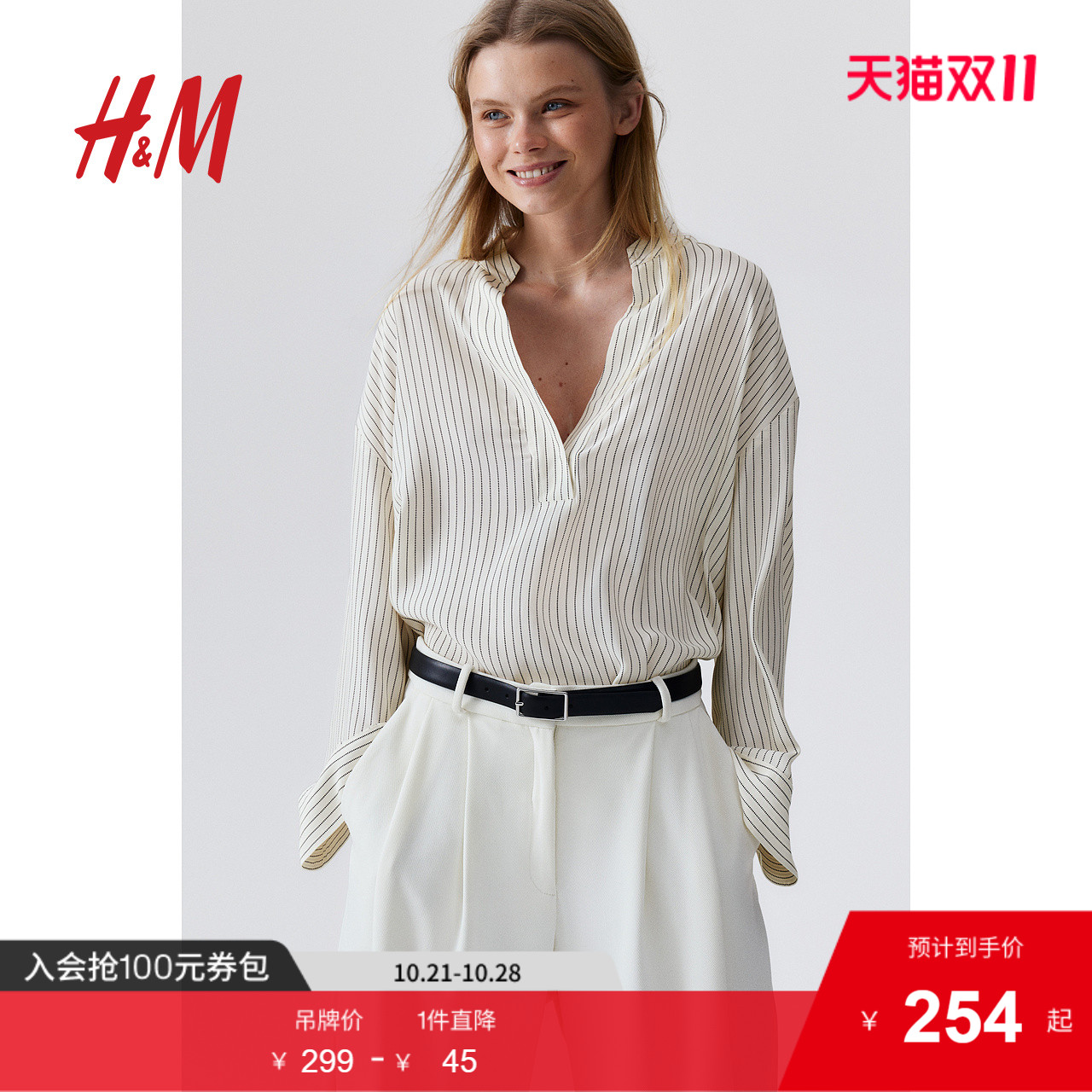 HM女士衬衫2025年秋季新款V领套头大廓形粘纤上衣128086