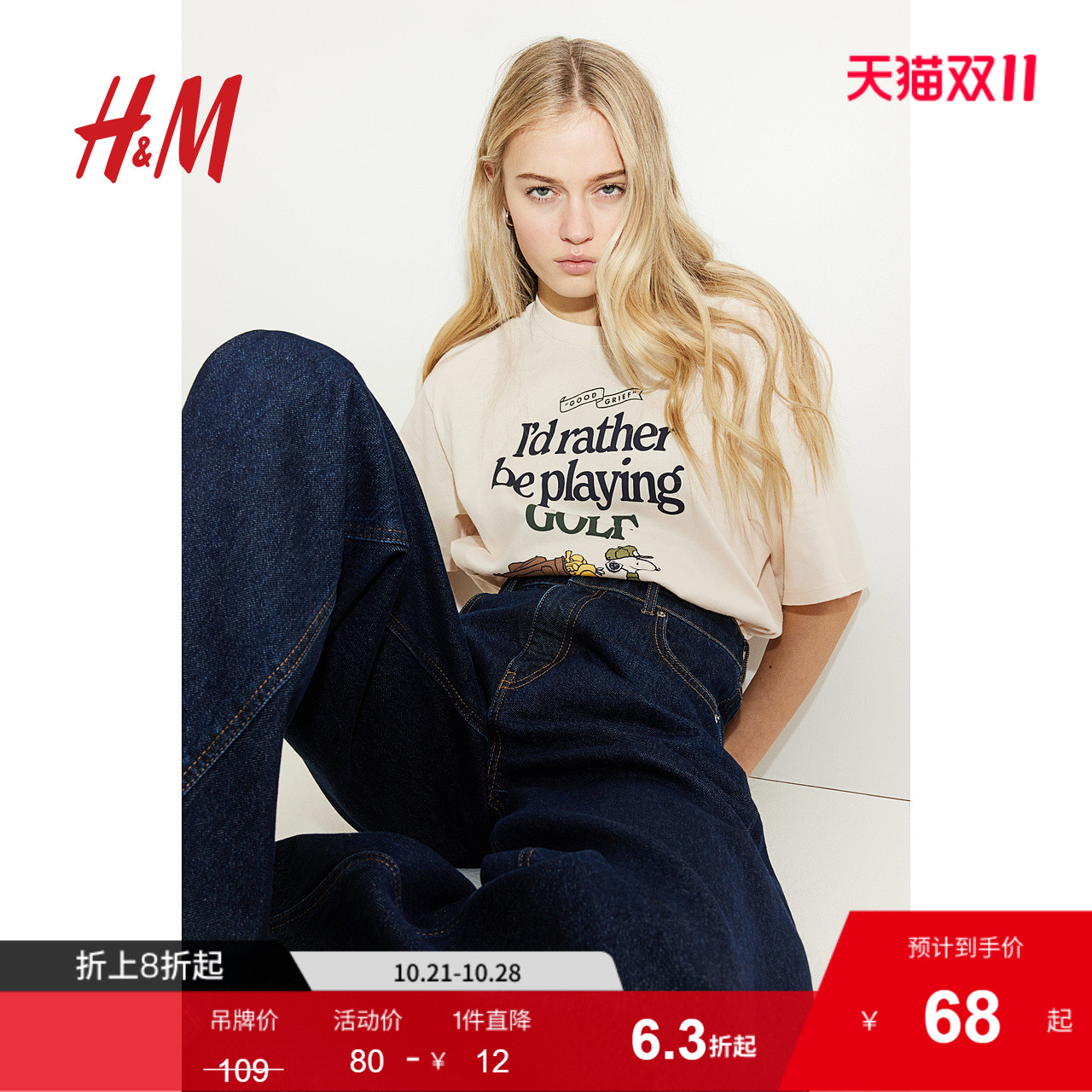 【博主推荐】HM女装T恤史努比美式圆领大廓形印花短袖上衣1260