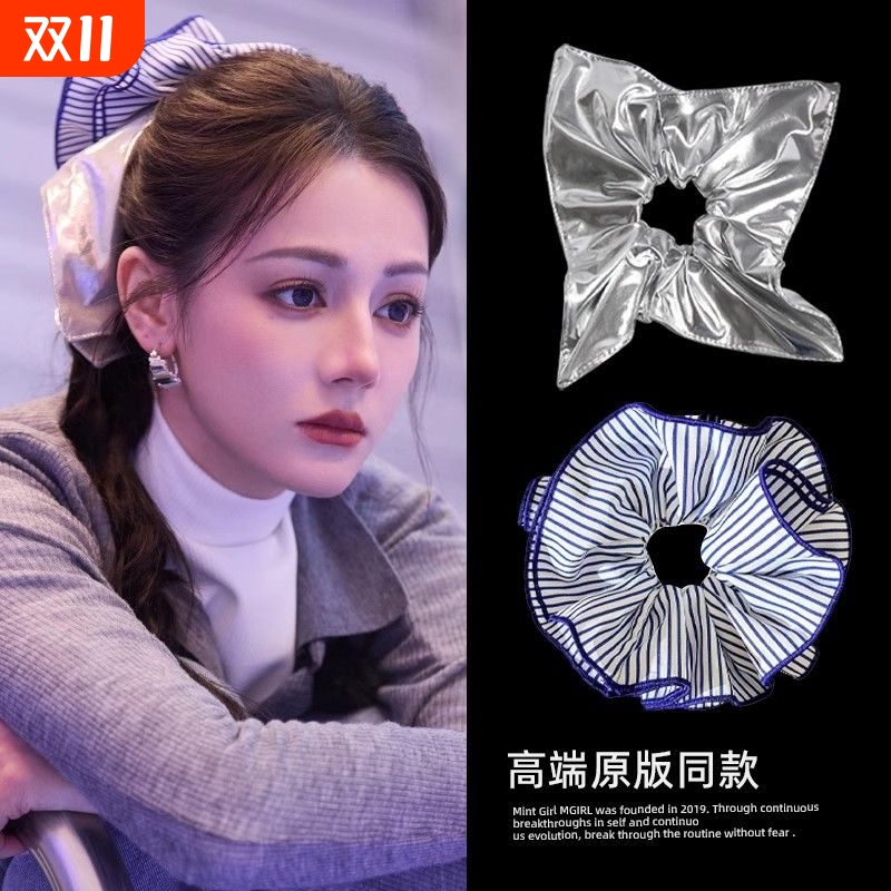 开始推理吧迪丽热巴同款发圈银色风车蓝色条纹叠戴韩系高级