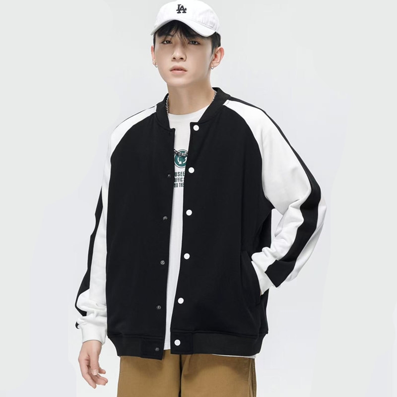 2025新款棒球服外套宽松美式棒球领夹克拼色条纹按扣运动开衫简约
