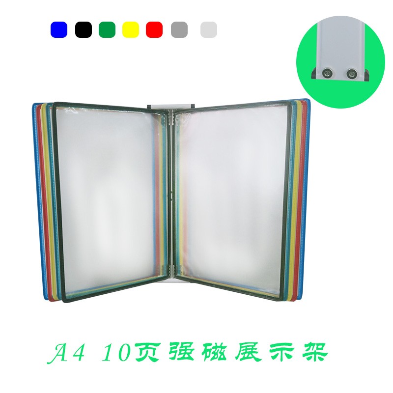 A410页磁性壁挂展示文件架 强磁性竖式金属支架10孔文件夹 小