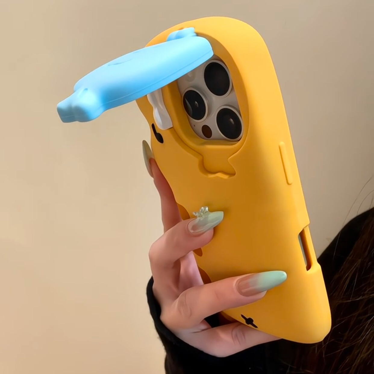 创意猫吃鱼翻盖镜头支架适用苹果15promax手机壳立体通软硅胶
