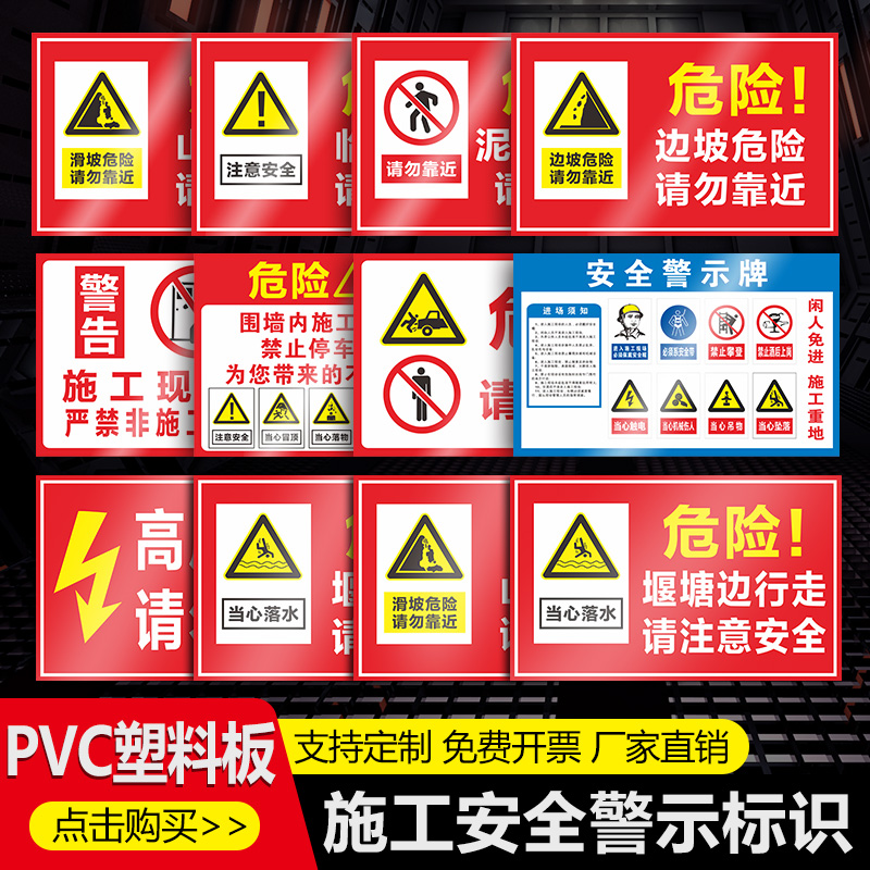 施工警示牌建筑临边危险山体滑坡
