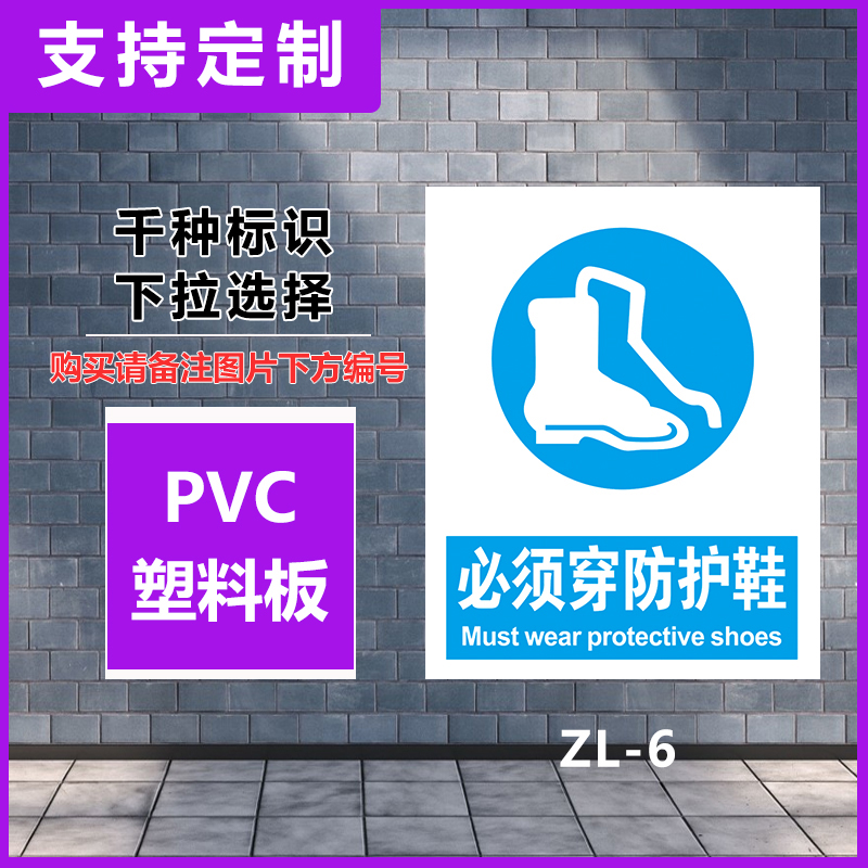 君墨岚PVC必须穿防护鞋警示牌