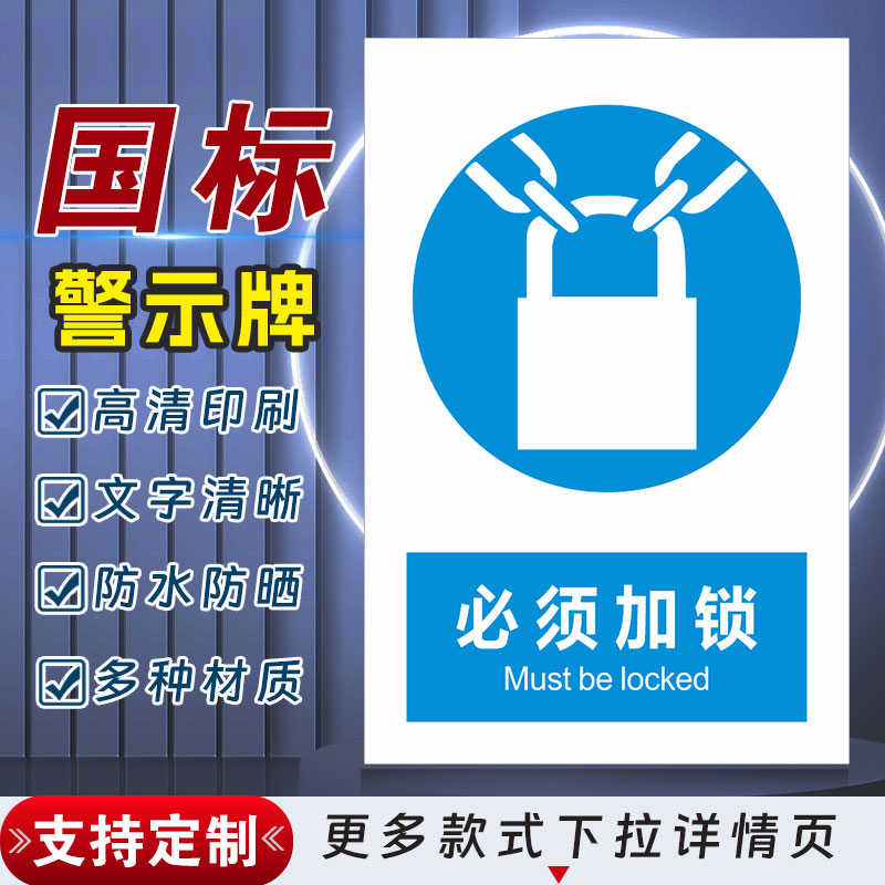 必须洗手新国标安全标识牌定制工厂车间消防警示牌有电危险提示牌施工