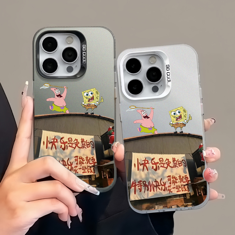 苹果小众卡通海绵宝宝彩银手机壳