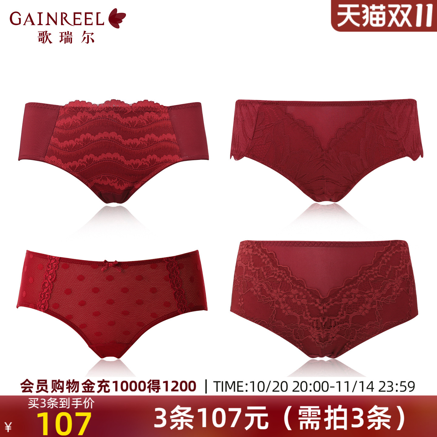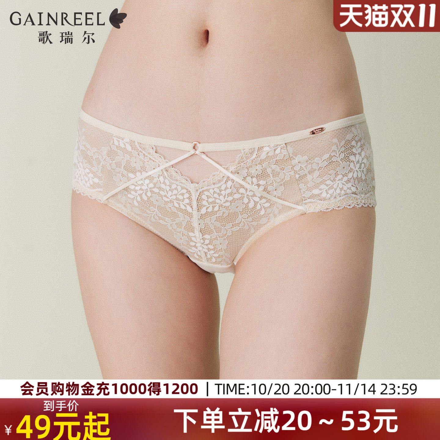 3条179元|爱慕艾莎内裤女棉质底裆性感蕾丝网纱中腰平角内裤