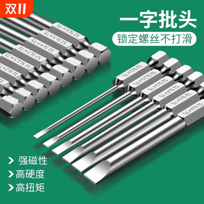 S2材料 一字批头 螺丝刀头 平口起子头 风批嘴 带磁性 50