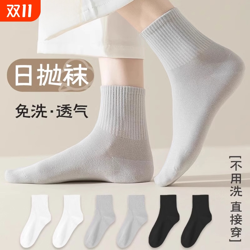 10双一次性袜子女男士日抛免洗短袜秋冬白色长筒袜旅行防臭便携