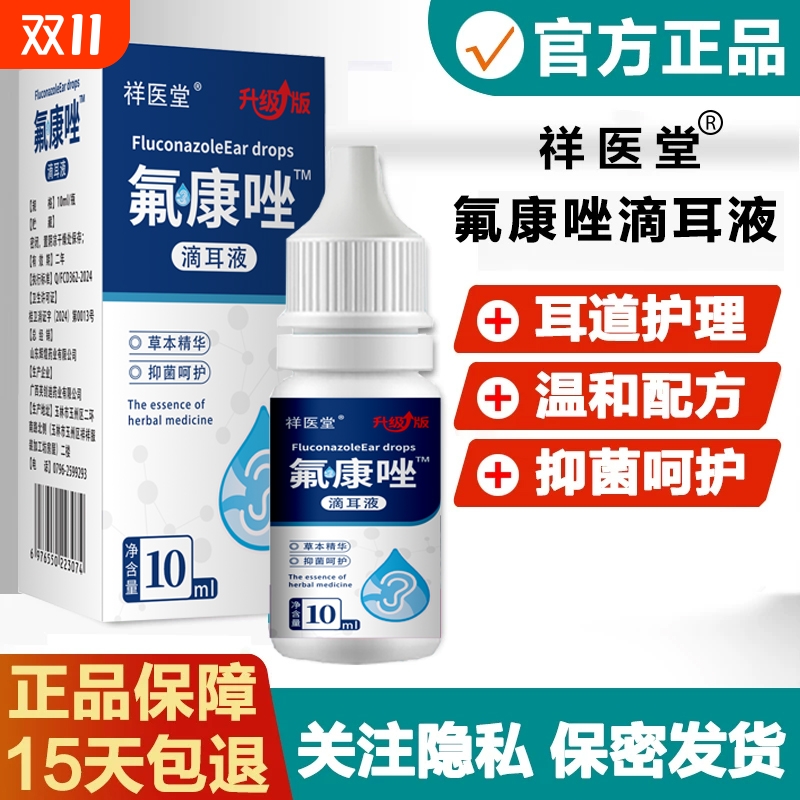 氟康唑滴耳液人用真菌霉菌性含硼酸氟康挫外耳道耳朵感染10ml抑菌