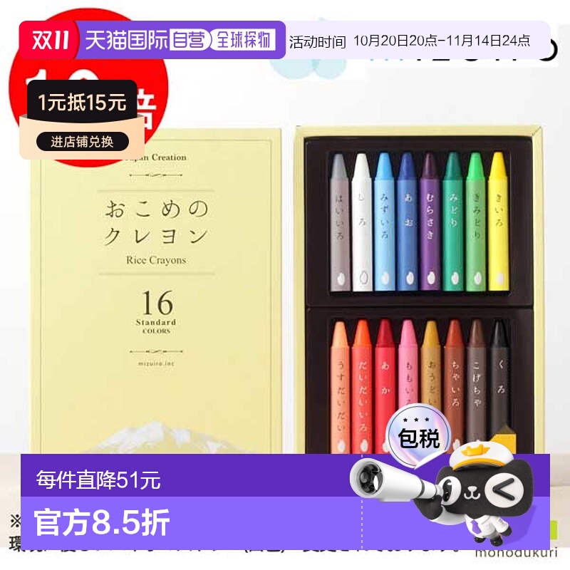 日本直邮mizuiro Okome大米蜡笔标准16色套装儿童绘画