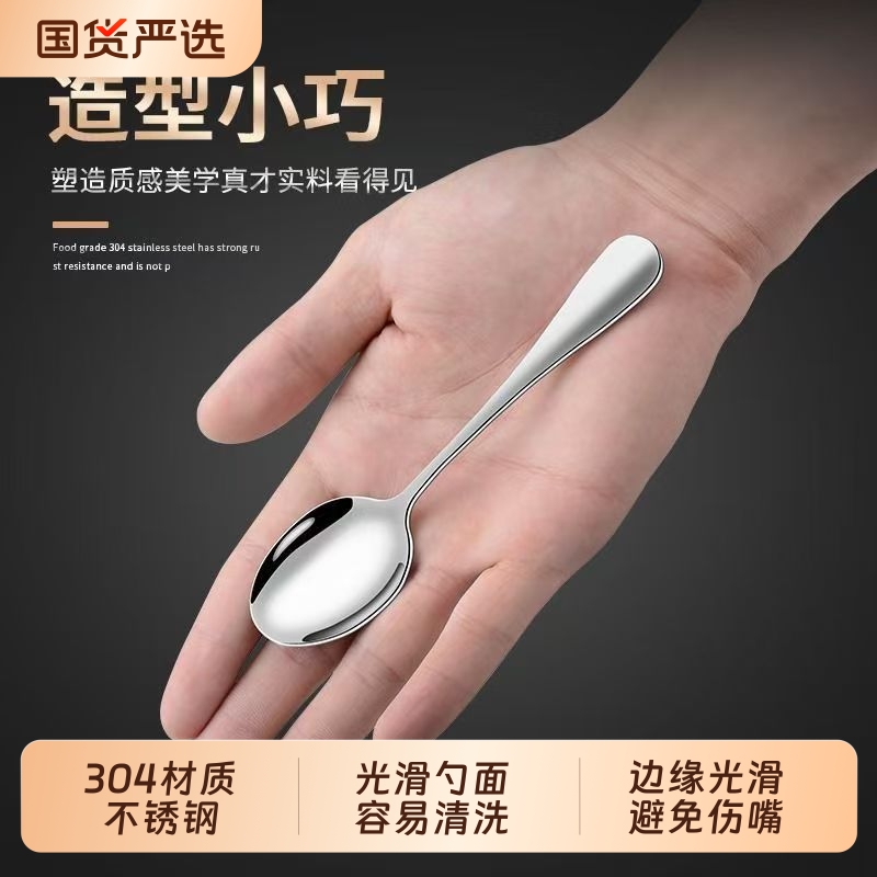 304不锈钢勺子商用酒店西餐具圆汤匙主餐勺甜品精致小咖啡勺茶更