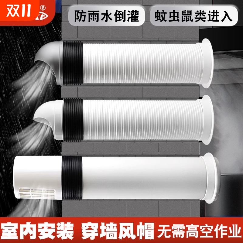 油烟机灶具配件排烟管出风口加长不锈钢风帽厨房烟机穿外墙防雨罩