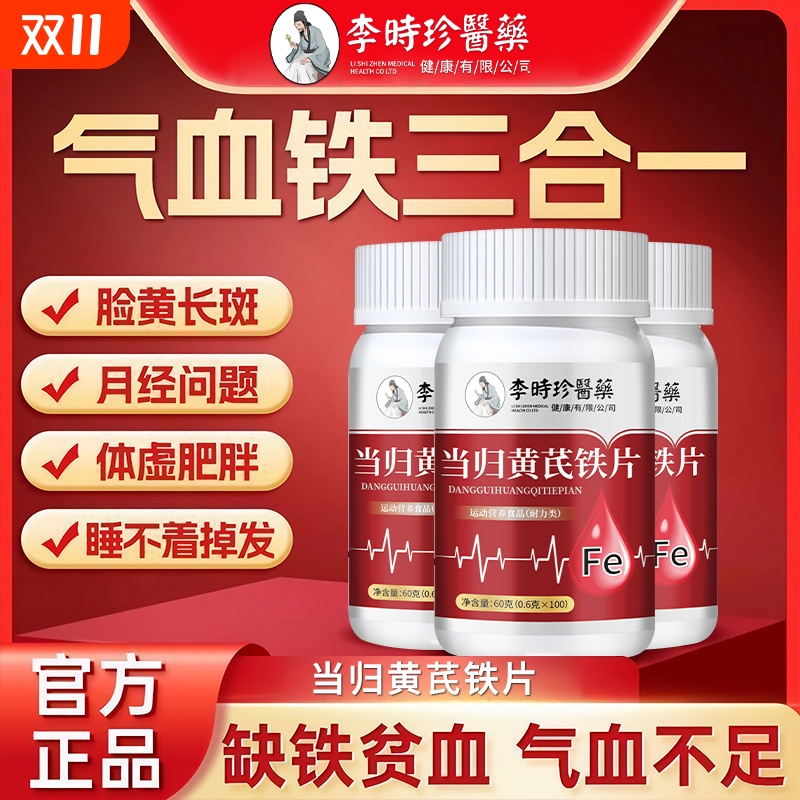 李时珍医药当归黄芪铁片补铁补血气血虚经期紊乱养血调理女性补血