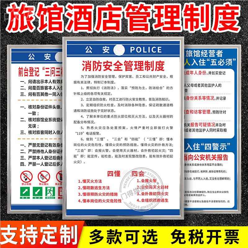 旅馆宾馆酒店消防安全管理制度牌上墙贴住宿登记安全保卫消防客房卫生