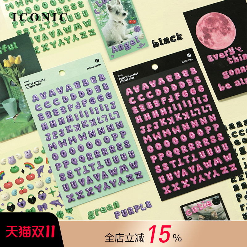 韩国ICONIC充气气球效果艺术英文数字符号贴纸套装每套6张PP
