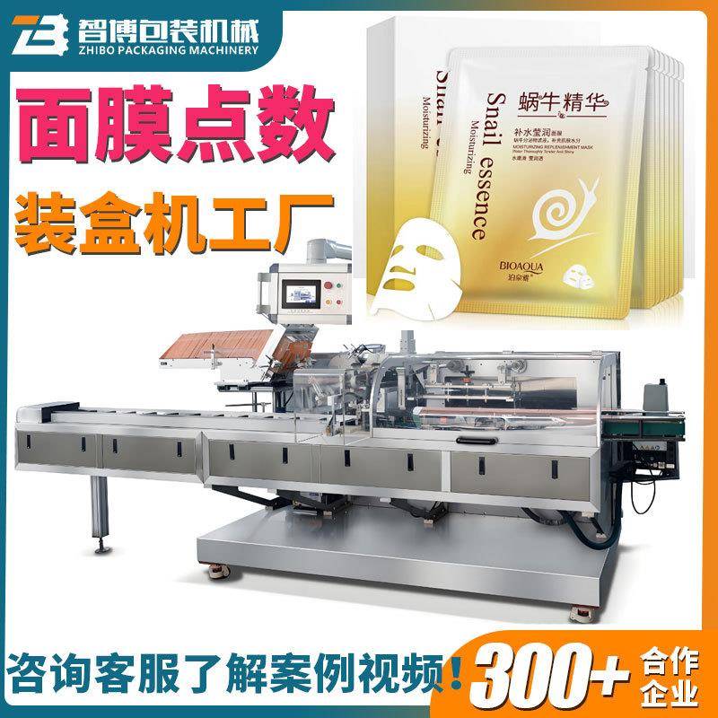 定制全自动化妆品面霜水乳折盒装盒装箱机点数面膜数片装盒机设备