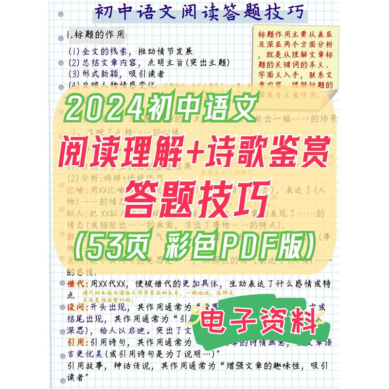 2024初中语文阅读理解答题技巧方法模板诗歌鉴赏中考覆习初一二三
