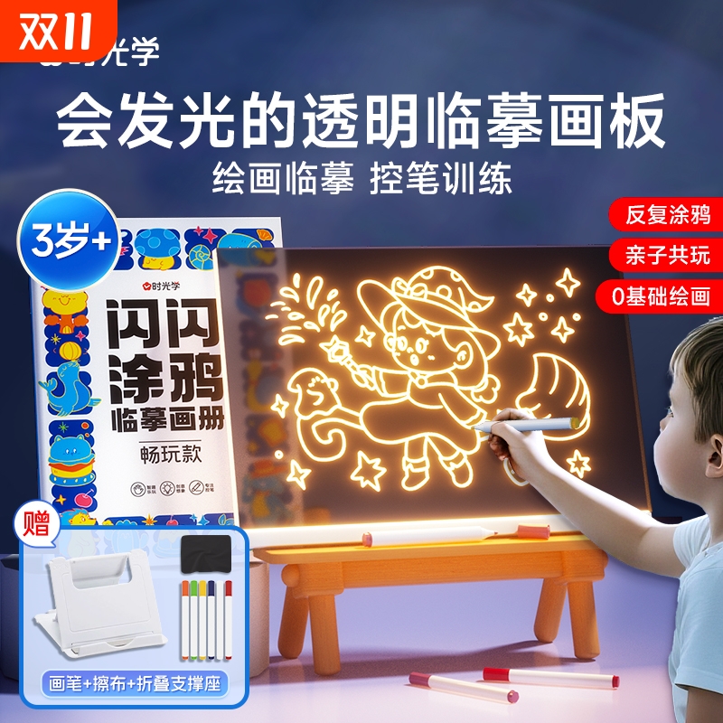 【时光学】儿童发光临摹画板透明会发光的液晶涂鸦画画可擦写字板绘画