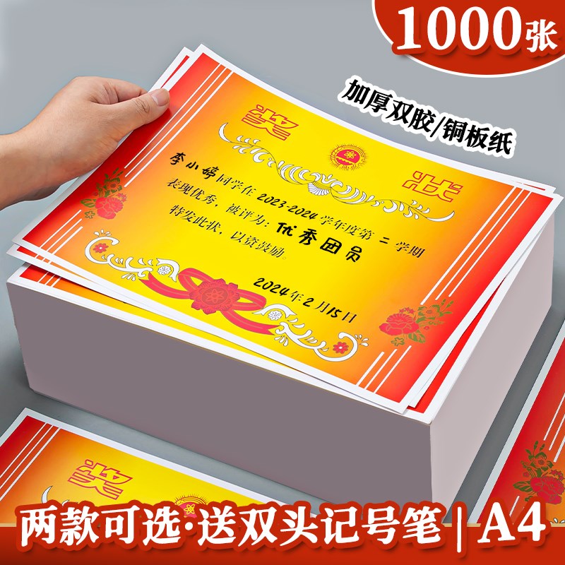 现货速发奖状纸a4可打印小学生表扬信荣誉奖状阅读之星三好学生奖