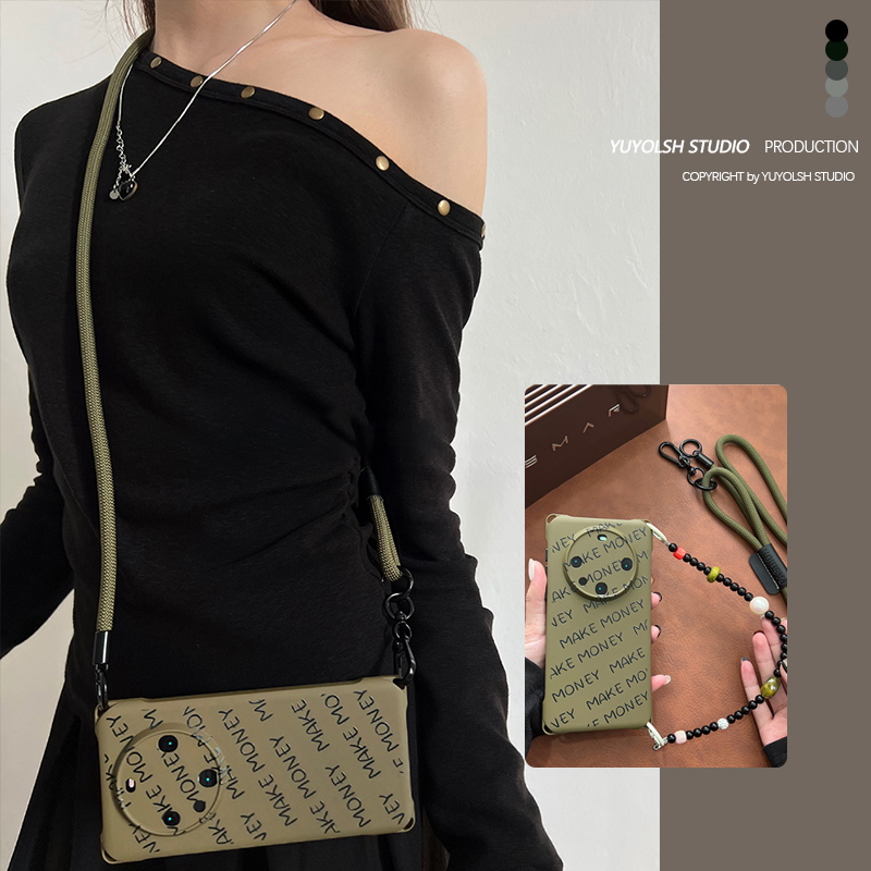 只想赚钱英文手机壳斜挎手提挂绳