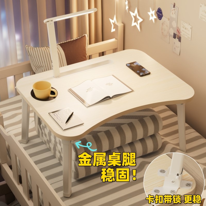 现货速发床上小桌子带台灯可折叠学生宿舍学习桌炕上办公家用懒人
