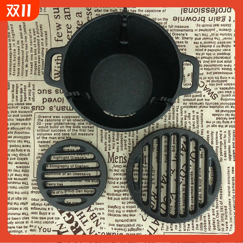 ?美式无涂层小号铸铁烧烤炉木炭商用室内户外露营烤肉一人食其