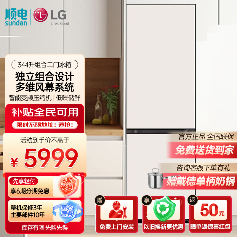 LG 344升嵌入式二门冰箱 自由组合随需而变 M342BE17