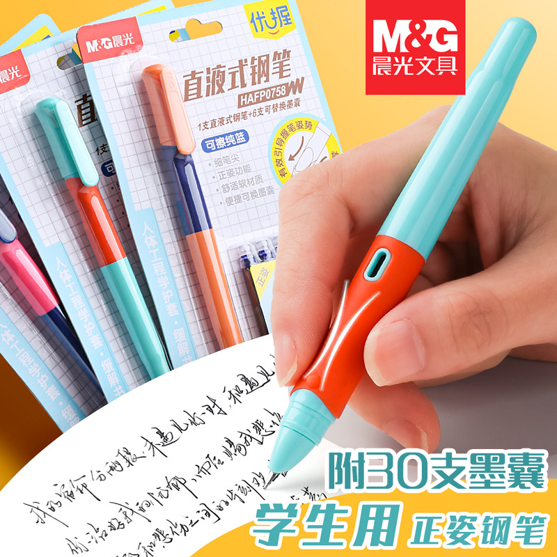 得力钢笔墨囊速干墨水小学生用文具练字笔可擦晶蓝可换墨囊通用囊式墨