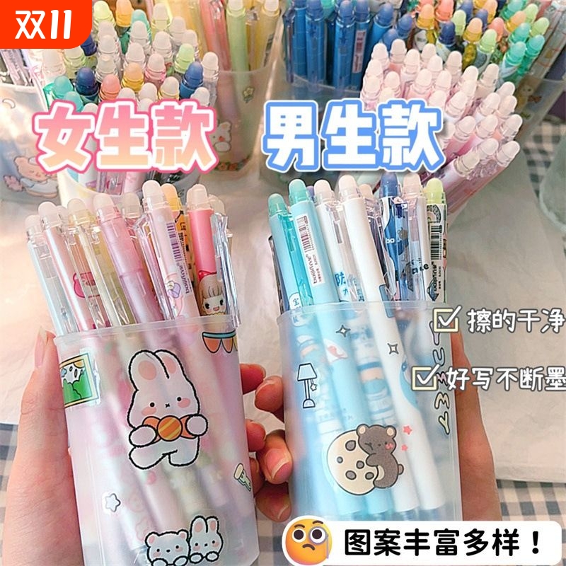 可擦笔按动笔摩易擦学生黑色中性笔小学生专用带橡皮晶蓝女生文具顺滑