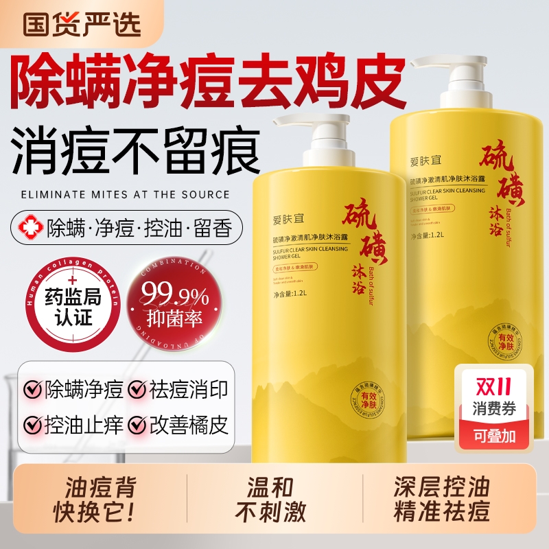 硫磺除螨沐浴露男女成人后背皮肤瘙痒祛痘持久留香大容量独特清洁