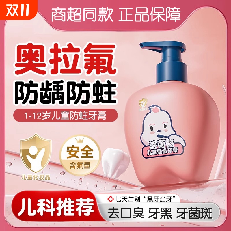 奥拉氟儿童牙膏防蛀牙3-6-12岁换牙期可防龋固齿含氟宝宝牙膏正